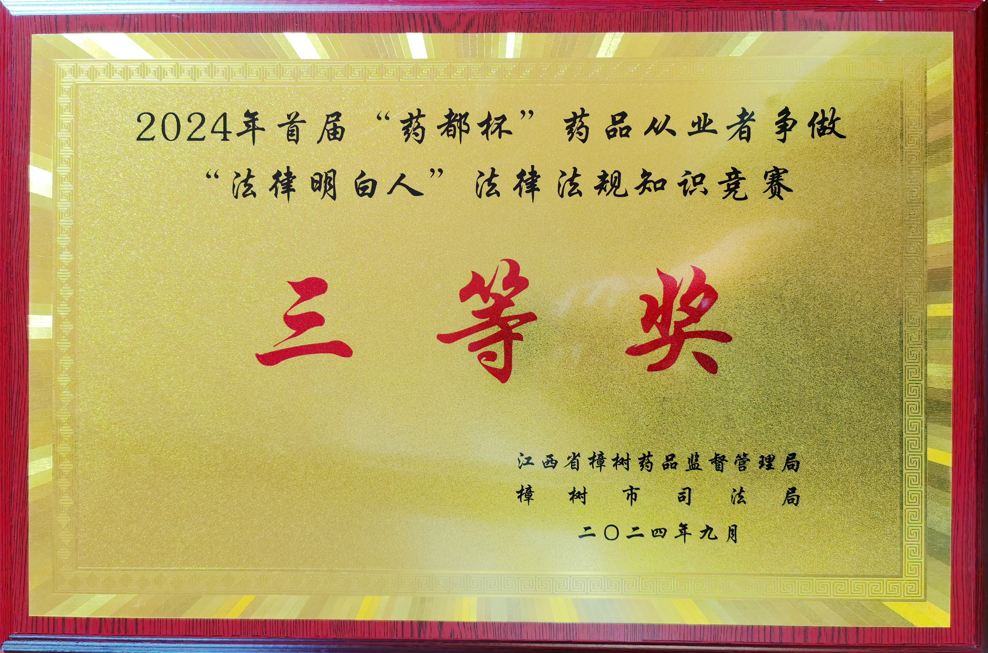 2024年9月13日由江西省樟樹藥品監(jiān)督管理局、樟樹市司法局聯(lián)合舉辦的《樟樹市首屆“藥都杯”藥品從業(yè)者爭做“法律明白人”法律法規(guī)知識競賽活動》進(jìn)行了決賽,10個單位入圍決賽,經(jīng)過激烈的角逐,五洲醫(yī)藥集團(tuán)所屬企業(yè)江西云購大藥房有限公司獲得二等獎、江西彭氏國藥堂有限公司獲得三等獎,江西五洲醫(yī)藥有限公司獲得最佳組織獎。