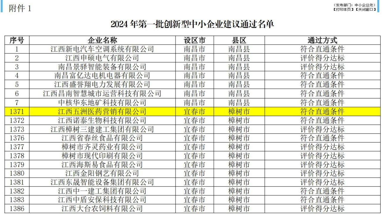創(chuàng)新型中小企業(yè)、專精特新中小企業(yè)、專精特新“小巨人”企業(yè),是我國優(yōu)質(zhì)中小企業(yè)培育的三個(gè)層次,共同構(gòu)成梯度培育體系。其中,創(chuàng)新型中小企業(yè)具有較高專業(yè)化水平、較強(qiáng)創(chuàng)新能力和發(fā)展?jié)摿?,是?yōu)質(zhì)中小企業(yè)的基礎(chǔ)力量。經(jīng)企業(yè)網(wǎng)上申報(bào),省工信廳組織專家評(píng)審,五洲醫(yī)藥獲江西省2024年第一批創(chuàng)新型中小企企業(yè)稱號(hào)。